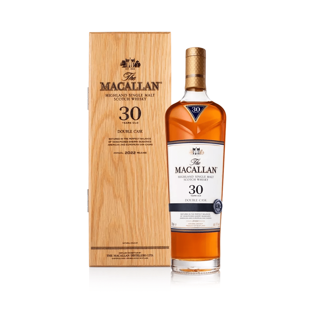 麥卡倫雙桶30年威士忌,在美洲橡木和歐洲雪莉酒桶的和諧融合中陳釀30年,造就了其獨特的風味和個性。