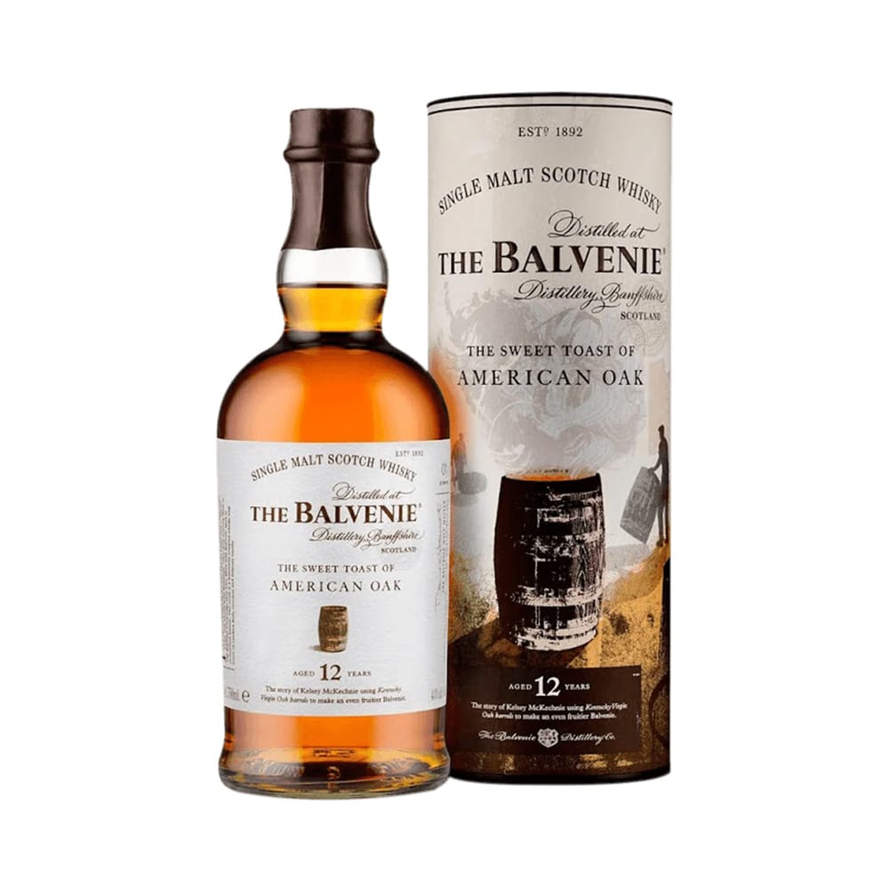 Balvenie 12 Year Old – The Sweet Toast of American Oak is a distinguished single malt whisky from Balvenie’s Stories series, showcasing the art of oak maturation. This whisky is first matured in traditional bourbon casks before being finished in deeply toasted new American oak casks, imparting rich, sweet, and toasty oak flavors.