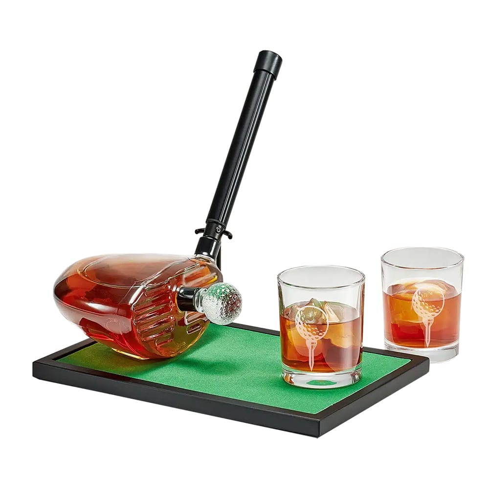 .A New Art of Liquor Collection: Features a 29 oz (850mL) golf club decanter, 2 x 8.5 oz golf ball printed shot glasses, 1 x golf course base, 1 x golf stopper. The decanter sets preserves the crisp, rich texture of Liquor, Scotch, Rum, Bourbon, Vodka, Tequila, and all your favorite spirits. Combining art with functionality, it is an ideal Ideal to enhancing any man cave decor, and a must-have for those who seek whiskey gifts for men