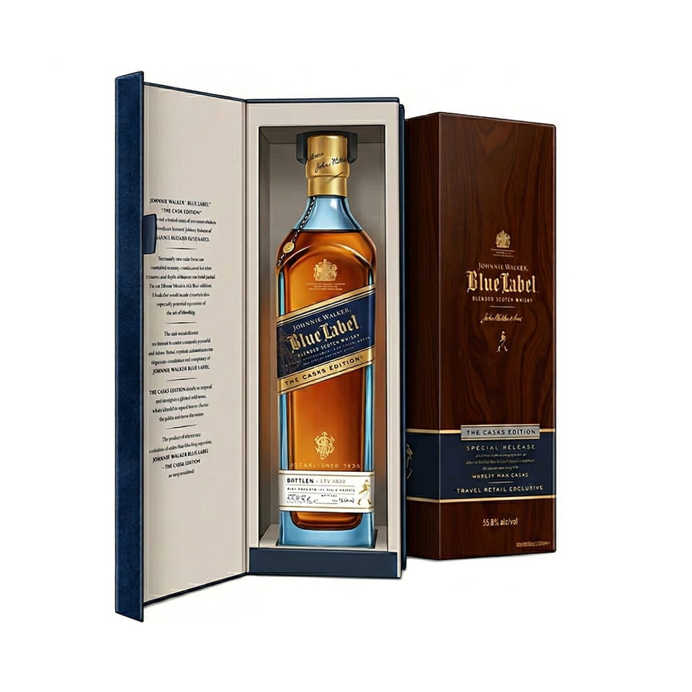 約翰走路藍牌威士忌選用最珍貴的陳年原酒,重現19世紀初的威士忌風格,所有原酒均由調酒大師親手挑選,從蘇格蘭各地的七百萬餘桶酒藏中萬中選一,並且等待它獨特的品質,等到個性和風味歷時熟成。保留了約翰走路特有的煙燻味道,他擁有了西部威士忌的煙燻味,加上東部威士忌特有的濃濃香甜口感,風味獨特擁有豐富層次,他的調配的標準非常嚴格,所以極為珍貴,而且他動用家族密藏最稀有珍貴的威士忌,從而創思出這款極致純釀。